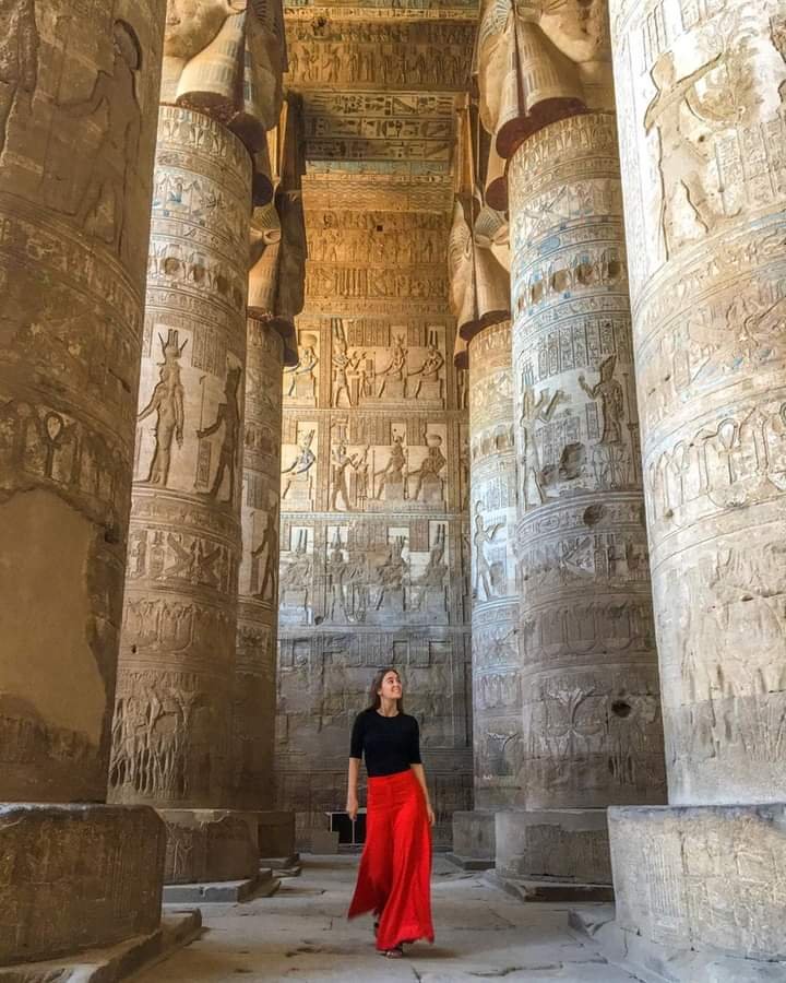 Храм богини Хатхoр — дочери бога солнца Ра, покровительницы любви, женственности и красоты. Хатхор, именуемая «Золотой госпожой», прославилась как космическое божество, от которого берет свое начало жизнь. Богине, покровительствующей женщинам, детям и семейным ценностям, поклонялись с древности. По сей день паломники посещают ее храм и совершают здесь свои таинственные обряды, а местные жители приходят сюда, чтобы попросить у Хатхор любви, помощи в родах, счастья и здоровья семьям. Храм сохранился до наших дней в практически первозданном виде — многиe столетия он был полностью скрыт песками. Лишь в XIX веке благодаря стараниям археологов он в буквальном смысле «вышел» на свет. В храме вы увидите великолепные памятники: храм Божественного рождения (Мамиси), Священное озеро, Гипостильный зал с 18 колоннами и еще один зал с 16 колоннами, Зал Жриц и многое другое.
