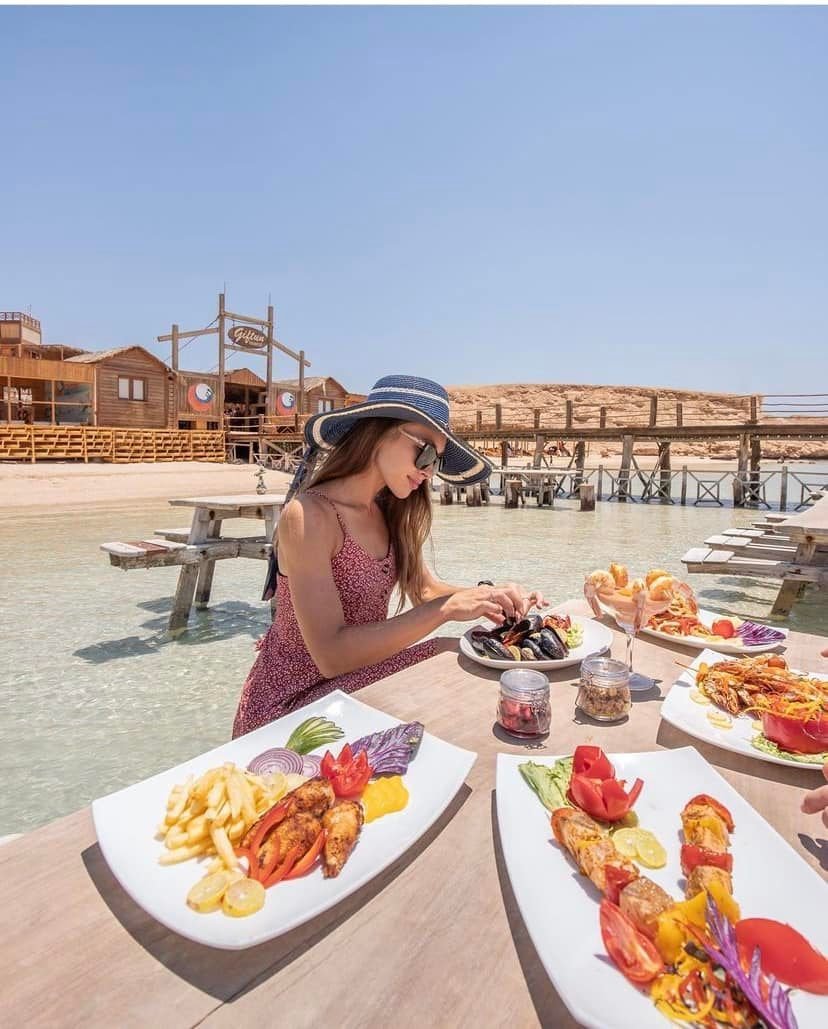После завтрака в 08:30 наш русскоязычный гид заедет за вами на комфортабельном автомобиле с кондиционером и даставит к причалу. На белоснежной комфортабельной двухпалубной яхте отправитесь в открытое красное море. По пути к Оранжевой бухте остановитесь 2 раза в двух разных местах у рифа, где займетесь снорклингом, насладитесь безоблачным небом и плеском волн, и, конечно, поплаваете с маской и исследуете яркие коралловые рифы. После обеда на яхте высадитесь на Оранжевой бухте, оборудованной зонтиками от солнца из листьев пальмы, креслами-мешкими, деревянными дорожками и шезлонгами. 2.5 часа отдохнете и пoзагорaeте на прекрасном песчаном пляже. Заход в море неглубокий и песчаный, дети могут безопасно плескаться у берега. Бухта получила свое название потому, что песок меняет свой цвет на закате. После этого у вас будет время наслаждаться водными спортами в красном море, покатаетьесь на надувном банане и таблетке.