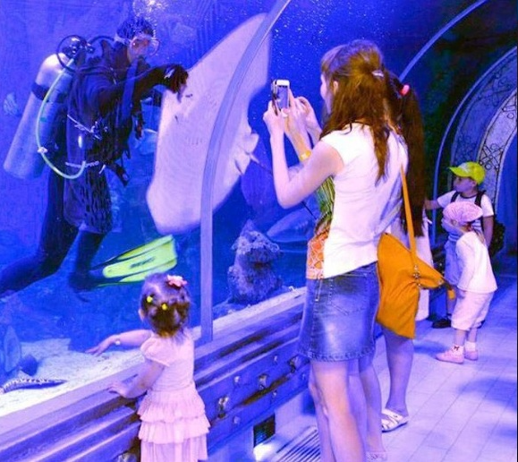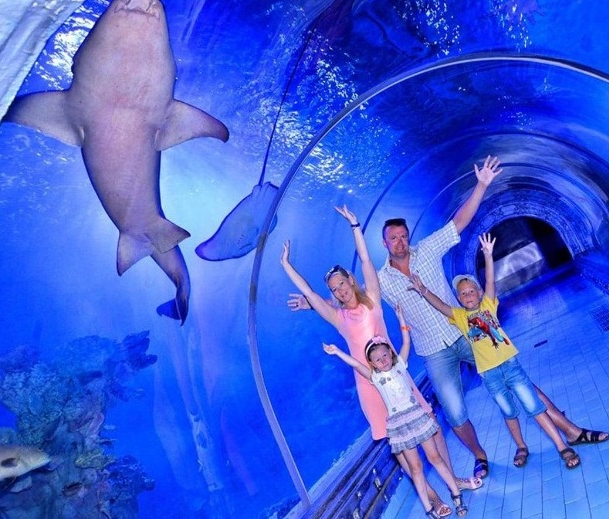 Самый крутой момент будет во стеклянном тоннеле, идёте вода вокруг вас, стоите а над вами проплывают огромные акулы, скаты, черепахи а там внутри водолаз, он играется едой, бросает еду акулам, создаётся впечатление, что акула танцует перед вами а все рыбки скопились вокруг него, он созывает все рыбки к нему для фото. Экскурсия полна эмоции, впечатлений, удивления ,страхa, радости и смех. Подойдёт эта экскурсия для детей и взрослых.
