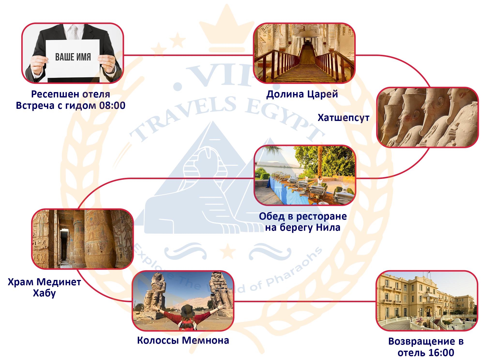 - Начнем нашу экскурсию из любого отеля/места в Луксорe, в том числе аэропорта и привезем обратно..