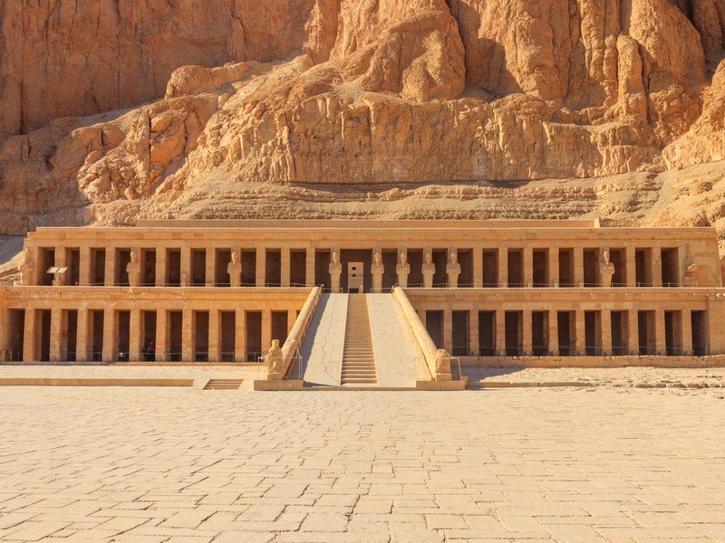 Храм царицы Хатшепсут — Это настоящее чудо инженерной мысли расположено на западном берегу Нила. Вы увидите три большие террасы, а на каждой из них — двор, помещения с колоннами и святилища, вырубленные в глубине скалы. Рассматривая скульптуры, барельефы и рисунки на стенах, вы узнаете о судьбе и сильном характере царицы Хатшепсут, о ее достижениях и вкладе в историю Египта.