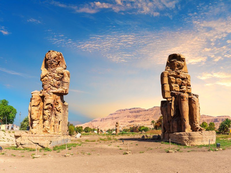 Поющие колоссы Мемнона — две огромные статуи, каждая высотой 18 метров и весом 700тонн, оставят неизгладимое впечатление. Глядя на величественные фигуры, восседающие на каменных постаментах, и слушая рассказы гида, вы, включив воображение, сможете увидеть, как оживает это место. Узнаете историю некогда величественного погребального храма, а главное, разгадаете тайны загадочного голоса «низвергнутого бога», который в прошлом исходил из статуи на восходе.