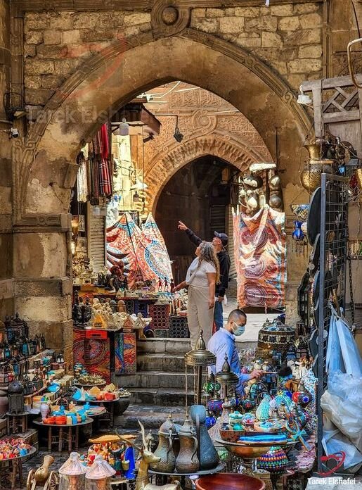 Восточная сказка «рынок Хан эль-Халили — самый большой в Африке, где хорошо чувствуется атмосфера древнего арабского города. На рынке вы увидите не только колоритные торговые ряды и магазины мастеров с россыпью всевозможных изделий, но и множество архитектурных памятников. Здесь же мы предложим вам выпить чашечку чая или кофе за мраморным столиком в кафе «Эль-Фишави» 1773 года, старейшем в Каире.