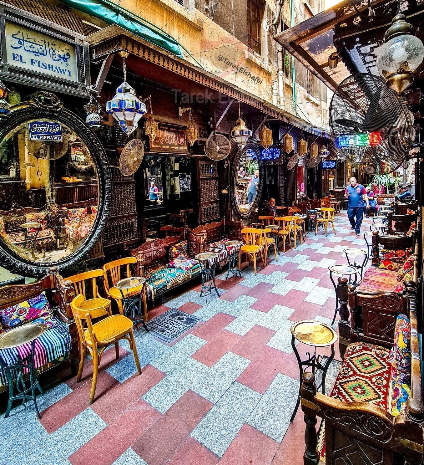 Восточная сказка «рынок Хан эль-Халили — самый большой в Африке, где хорошо чувствуется атмосфера древнего арабского города. На рынке вы увидите не только колоритные торговые ряды и магазины мастеров с россыпью всевозможных изделий, но и множество архитектурных памятников. Здесь же мы предложим вам выпить чашечку чая или кофе за мраморным столиком в кафе «Эль-Фишави» 1773 года, старейшем в Каире.