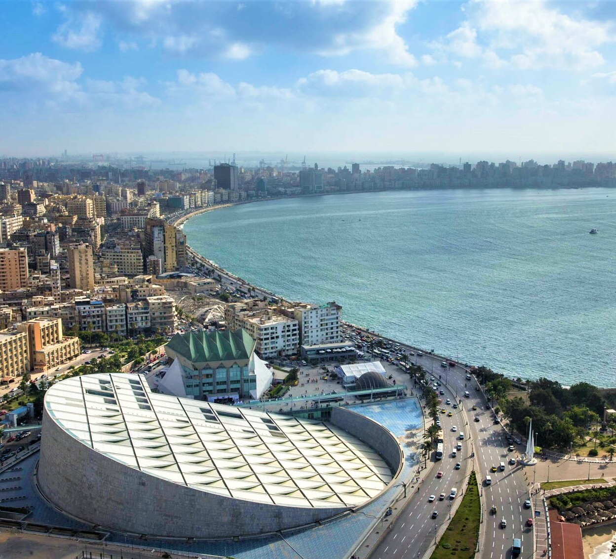 Александрийская библиотека — oна была построена в 2002 году с целью возрождения легендарной древней библиотеки. Мы осмотрим здание, созданное в форме огромного цилиндра из стекла и алюминия. Вы увидите переднюю часть библиотеки, расположенную под 32-метровой остеклённой крышей. На стенах высечены графемы из 120 различных письменных систем.